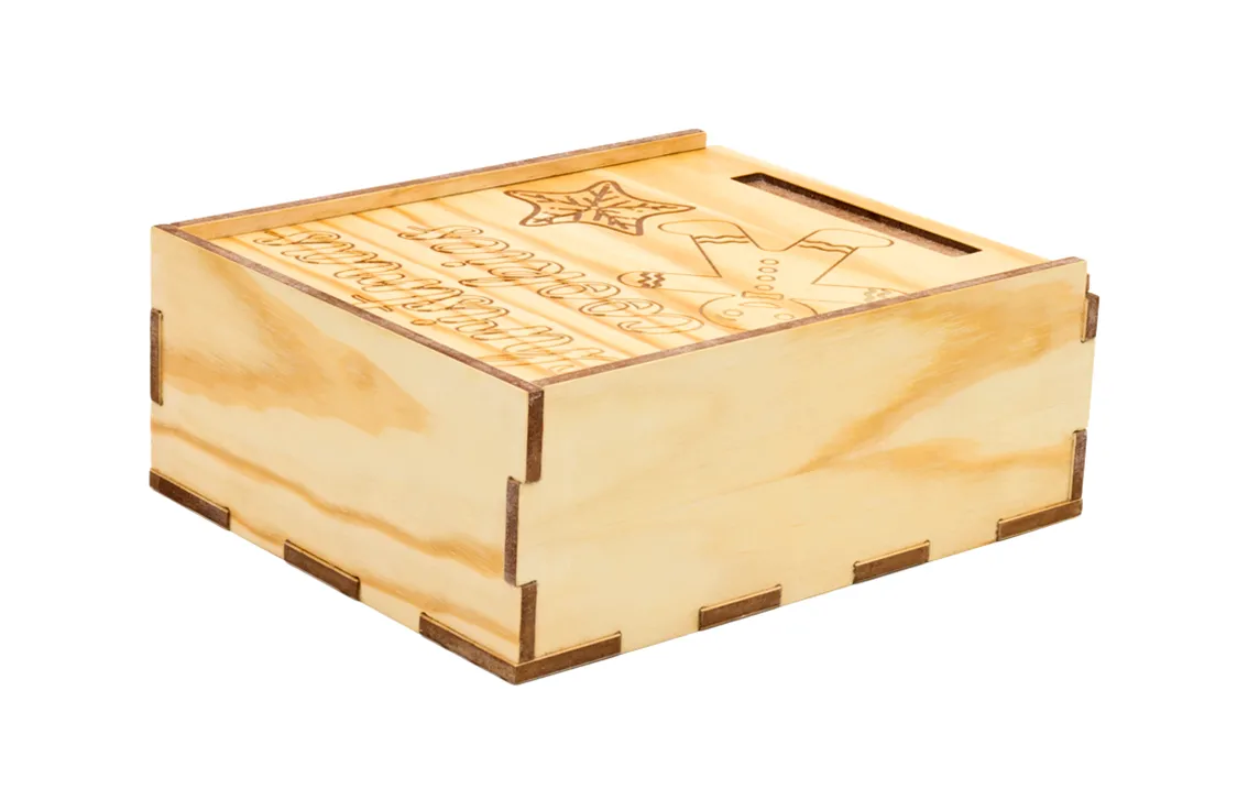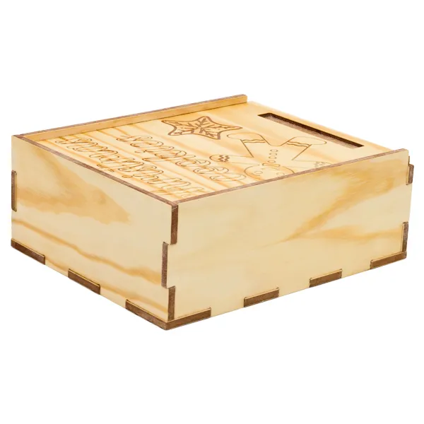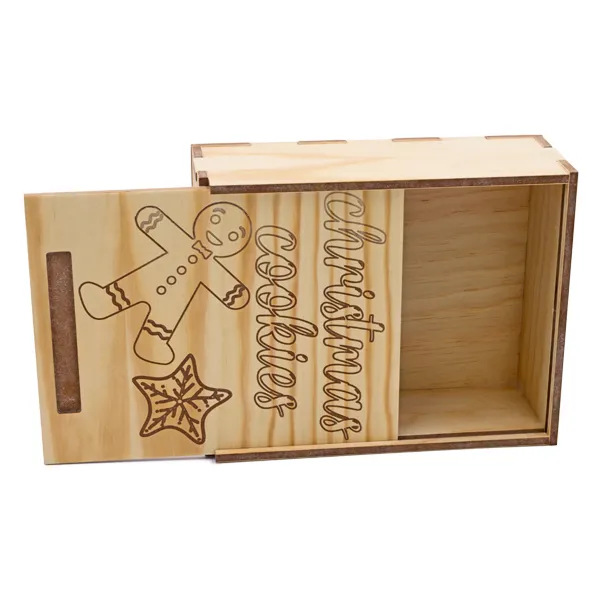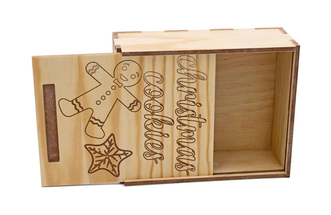 Caja de galletas fabricada en DM con cubierta de madera. Una caja ideal para regalar en navidades o cualquier época del año, un regalo original y natural para guardar tus galletas favoritas.